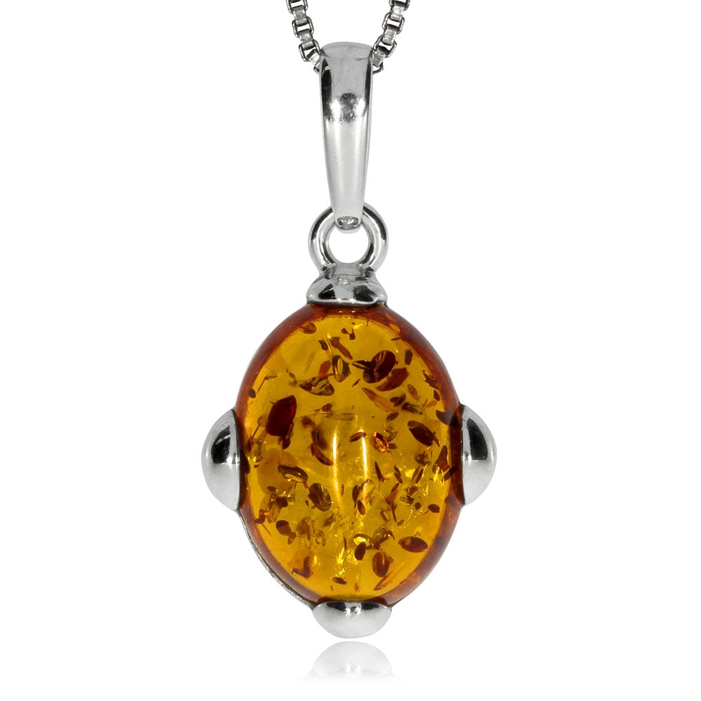 Stříbrný přívěsek s jantarem - Ovál ve čtyřech úchytech