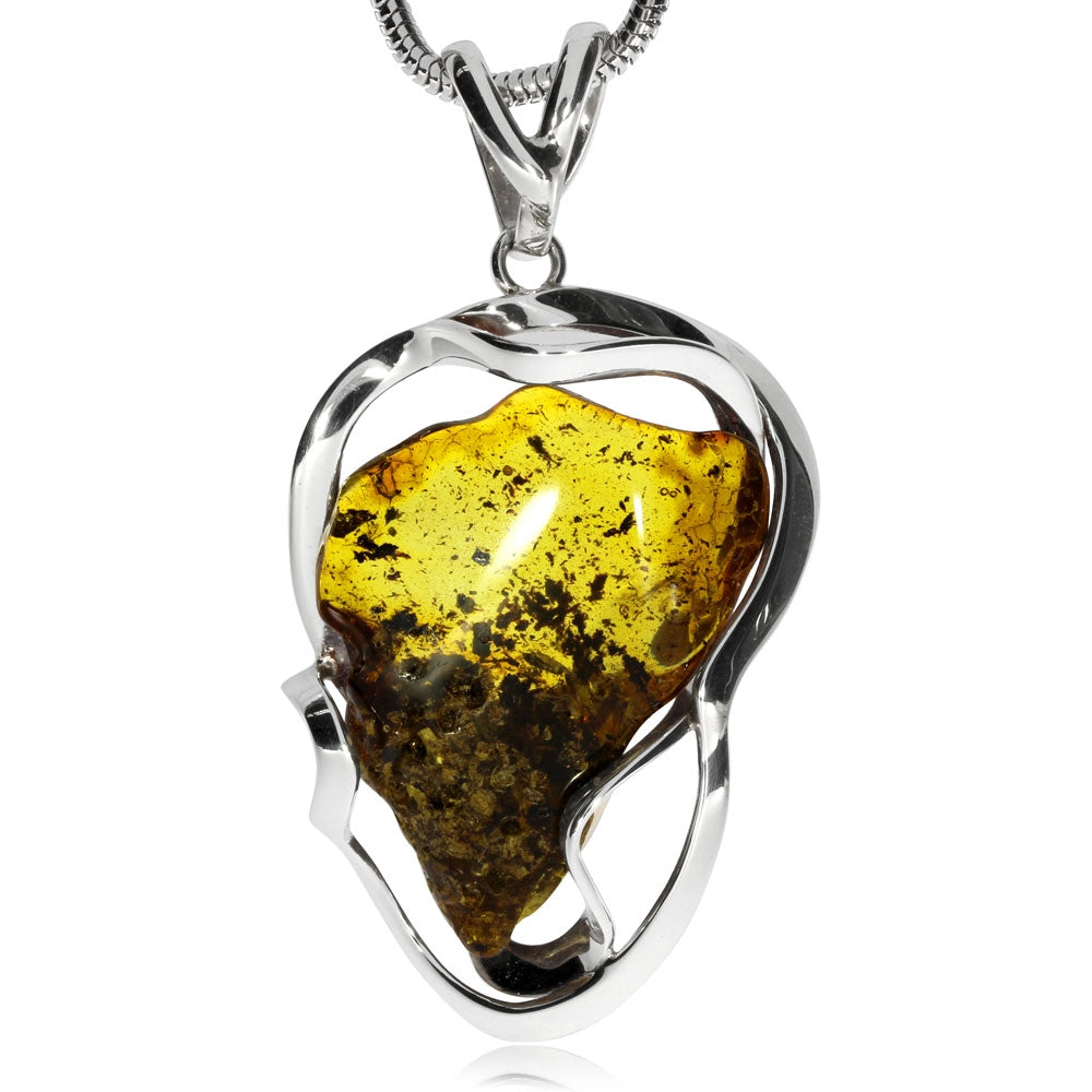 Stříbrný přívěsek - Jantarový kámen nepravidelného tvaru