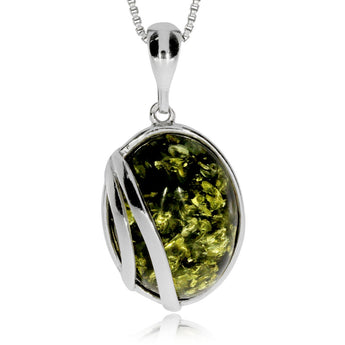 Přívěsek ze stříbra - Zelený jantar s liniemi