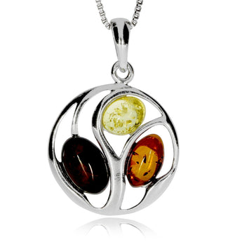 Stříbrný přívěsek - Motiv stromu života s jantary
