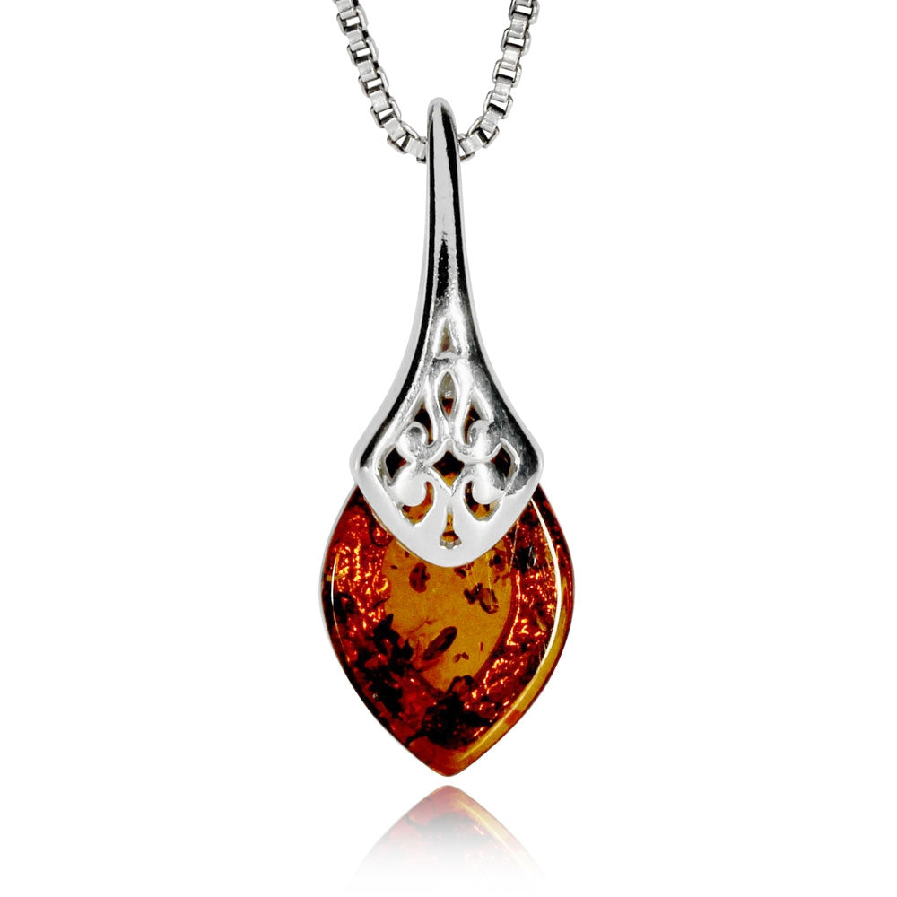 Přívěsek ze stříbra - Jantar se zdobenou horní částí