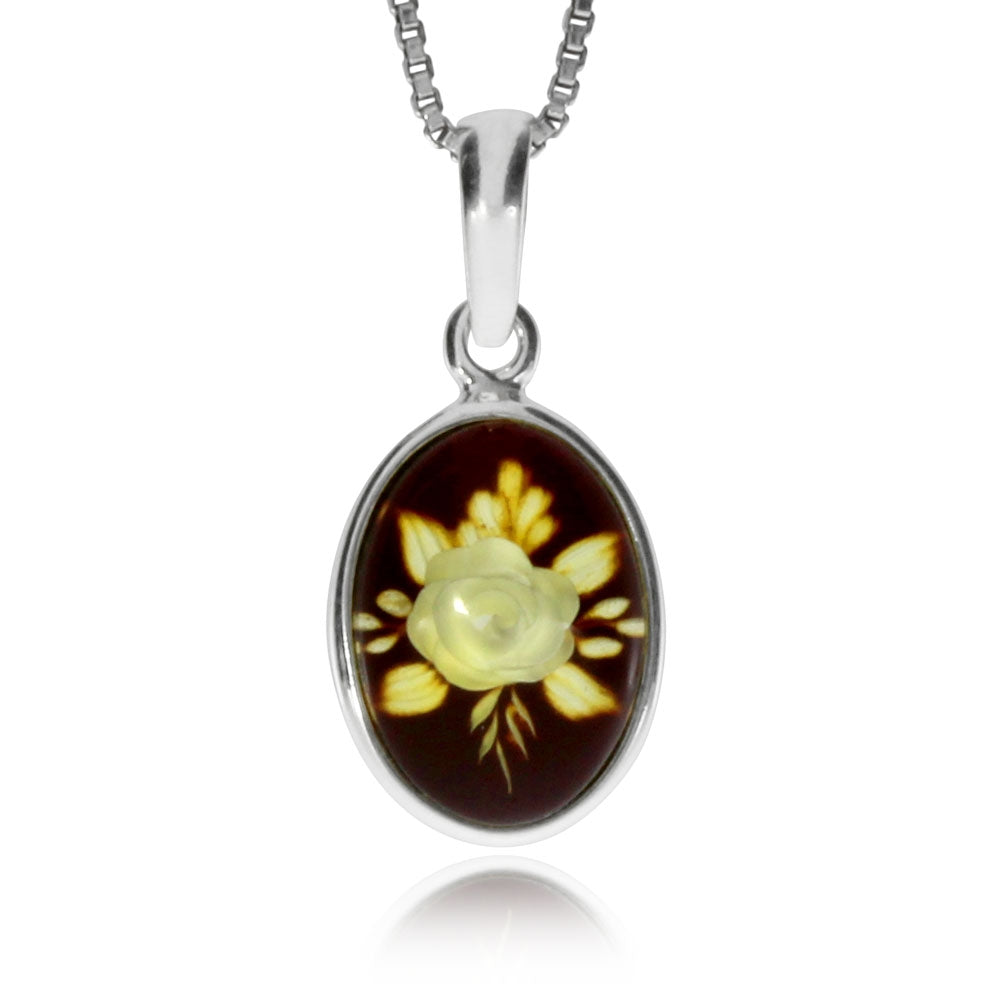 Stříbrný přívěsek - Oválný jantar s glyptikou