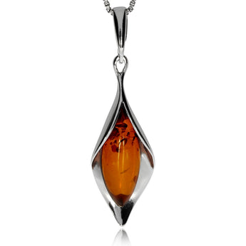Jemný dámský přívěsek nese v elegantně zpracované stříbrné ploše do špičky opracovaný jantar. Tento vzácný organický materiál je pro výrobu šperků oblíbený už od dávných dob. Zaujme svou zlatavou barvou a specifickou strukturou s množstvím inkluzí.