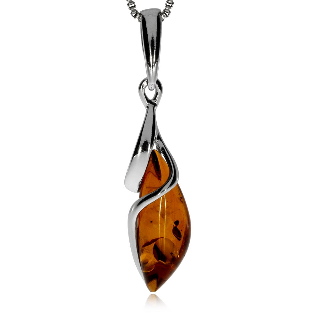Pěkně zpracovaný dámský přívěsek, který v sobě snoubí dva různé materiály, zlatavý jantar a zářivé stříbro s vrstvou odolného a pěkně lesklého rhodia. Jednoduchý design přívěsku působí elegantně a skvěle vynikne s dalšími jantarovými šperky.
