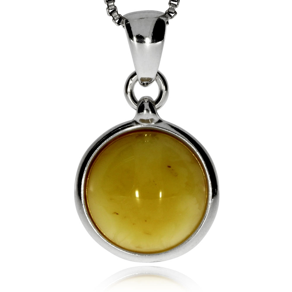 Stříbrný přívěsek se žlutým jantarem, kulatý