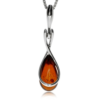 Jemný a originálně zpracovaný dámský stříbrný přívěsek nese jantarovou ozdobu ve tvaru kapky, doplněnou jemnou stříbrnou linií. Jantar je oblíbený organický materiál vytvořený z miliony let staré pryskyřice dávných stromů.