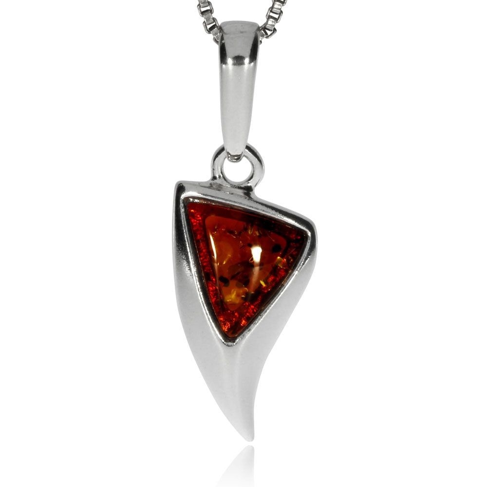 Stříbrný přívěsek s jantarem hnědé barvy, špička