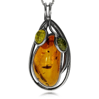 Originální dámský přívěsek, který v sobě spojuje povrch zářivého stříbra a různé odstíny přírodních jantarů. Přívěsek je vyrobený ze stříbra se starostříbrnou úpravou a skvěle vynikne zejména s dalšími osobitými jantarovými šperky.