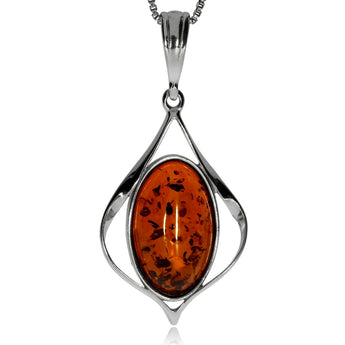 Stříbrný přívěsek s jantarem - ovál v rozdvojené linii