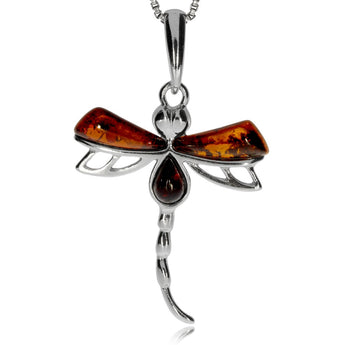 Velice krásně zpracovaný dámský přívěsek, který v sobě spojuje originální design a jemný a romantický motiv vážky. Přívěsek je vyrobený ze zářivého rhodiovaného stříbra a nese několik zlatavých jantarů, které celek šperku výborně dotvářejí a propůjčují mu značnou osobitost.