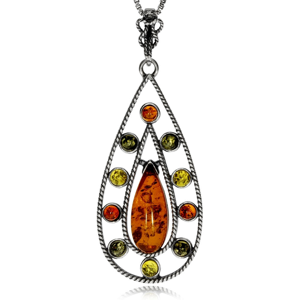 Stříbrný přívěsek s jantarem různých barev - kapka