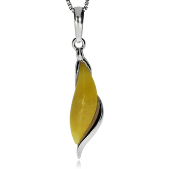 Originálně zpracovaný dámský přívěsek, který zaujme svou nadčasovou jednoduchostí a svérázným půvabem. Přívěsek je vyrobený ze zářivého stříbra a nese kousek mléčně žlutého přírodního jantaru, který doplňuje spodní kovová linie.