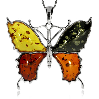 Stříbrný přívěsek s jantarem - Motýl ze čtyř barev