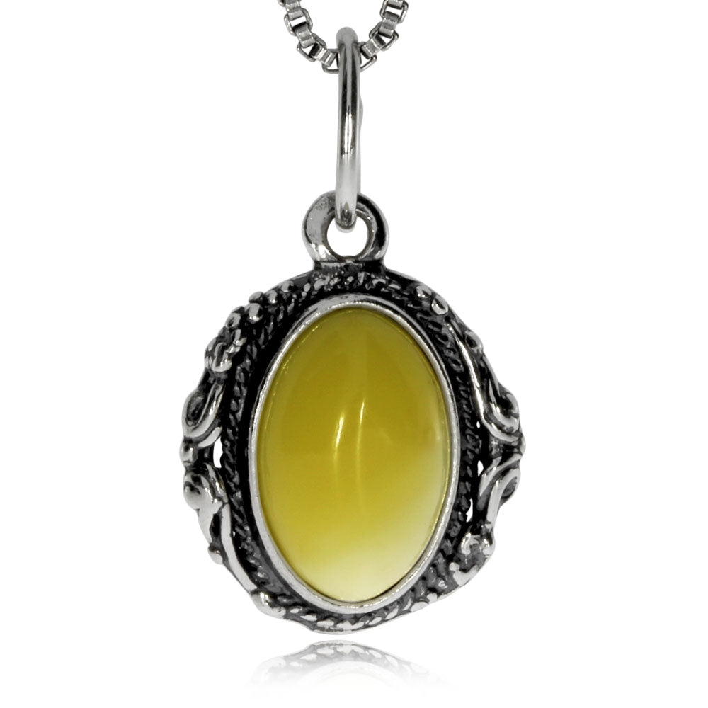 Stříbrný přívěsek se žlutým jantarem - zdobený ovál