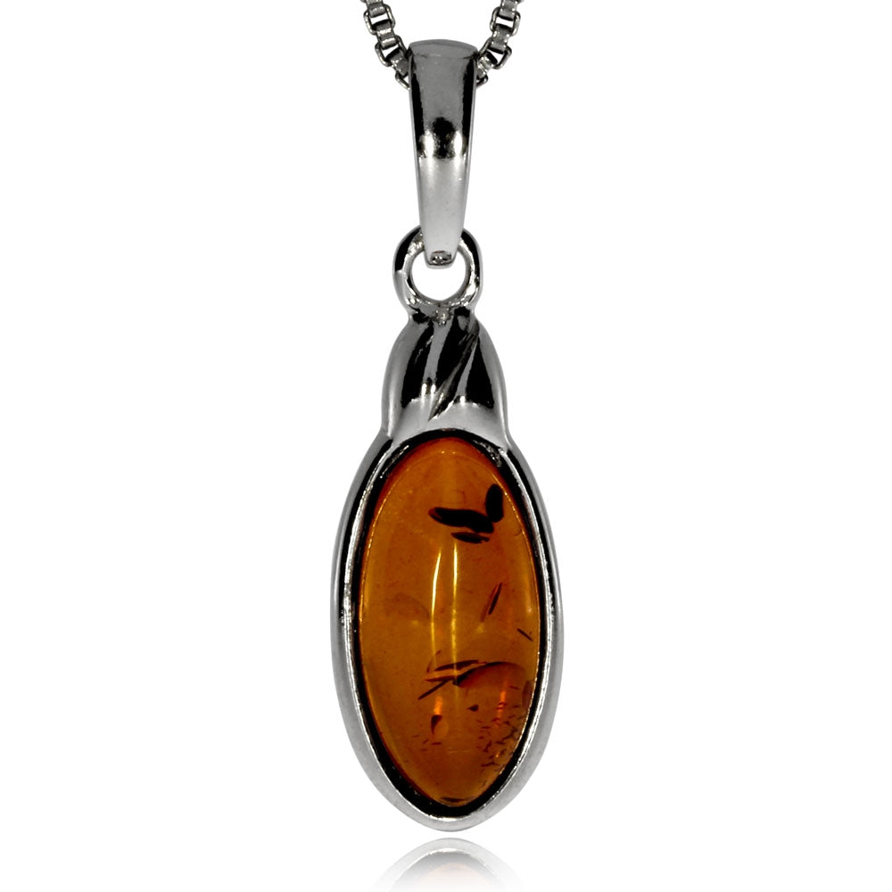 Stříbrný přívěsek s jantarem - Kámen ve tvaru oválu