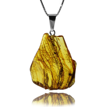 Originálně zpracovaný přívěsek, který nese zlatavý kousek přírodního jantaru, bude skvělou ozdobou pro každodenní nošení i elegantní příležitosti. Je vyrobený z kvalitního leštěného stříbra.