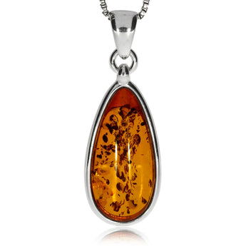Stříbrný přívěsek s jantarem barvy koňaku - Ovál