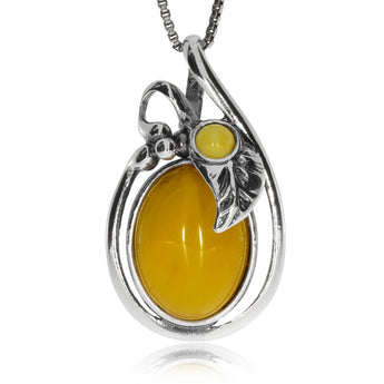 Stříbrný přívěsek - Zdobný jantarový ovál s lístkem