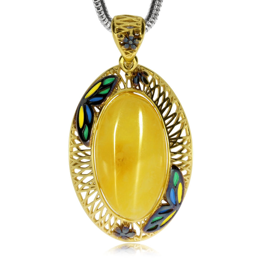 Stříbrný pozlacený přívěsek se žlutým jantarem a motýlky
