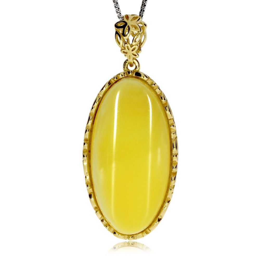 Stříbrný zlacený přívěsek se žlutým jantarem a úchytem zdobeným květy