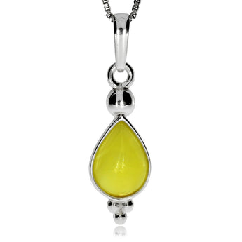 Stříbrný přívěsek - Žlutá jantarová kapka s kuličkami