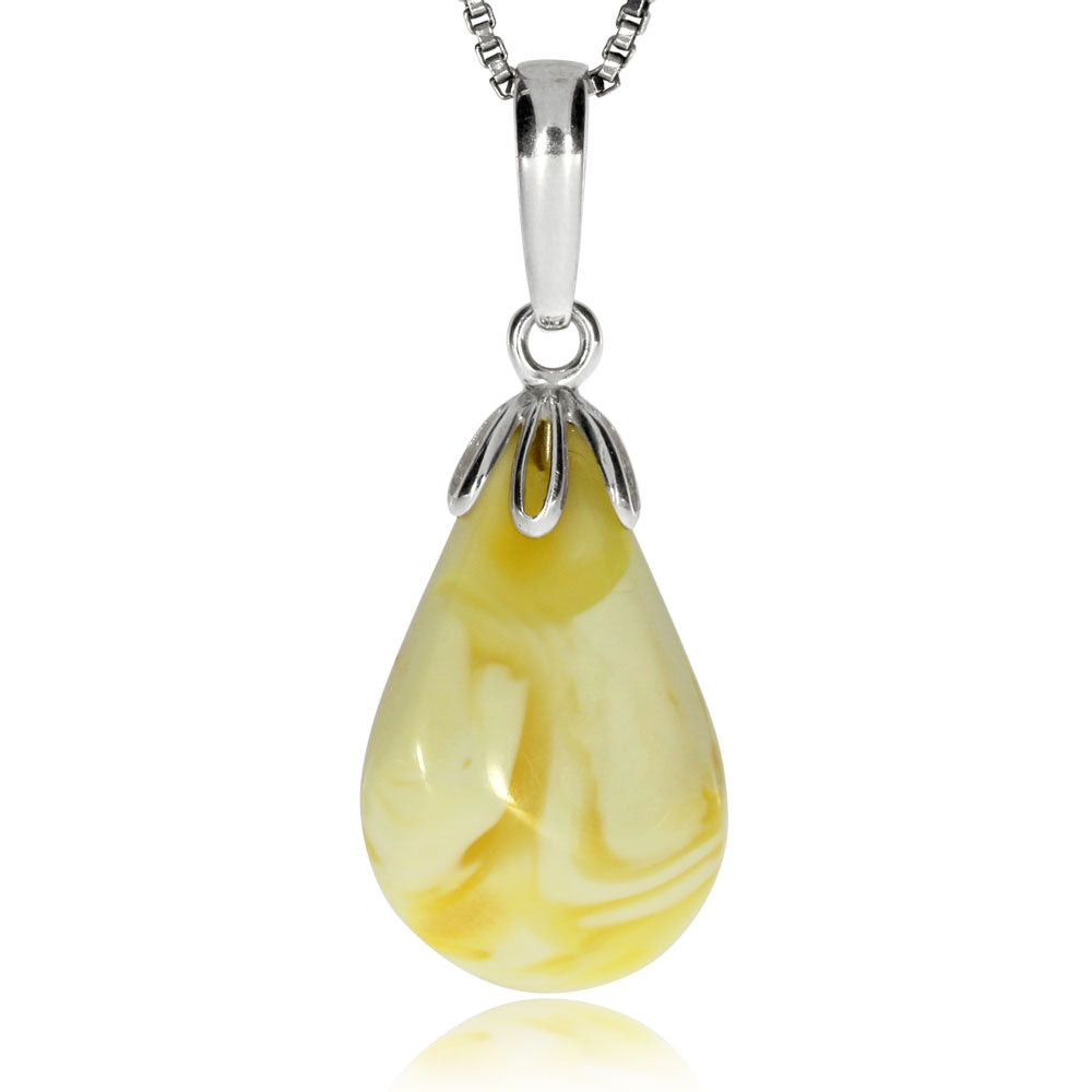 Stříbrný přívěsek - Kapka mléčného jantaru