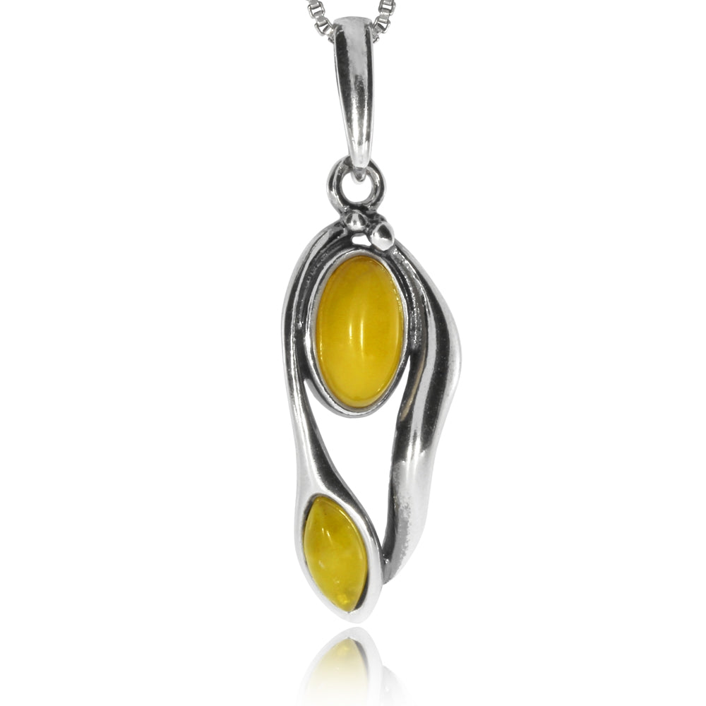 Stříbrný přívěsek - Dva oválné jantary v nepravidelném tvaru