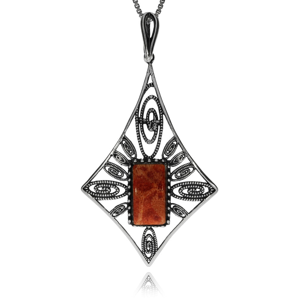 Stříbrný přívěsek s korálem - Ozdobný kosočtverec