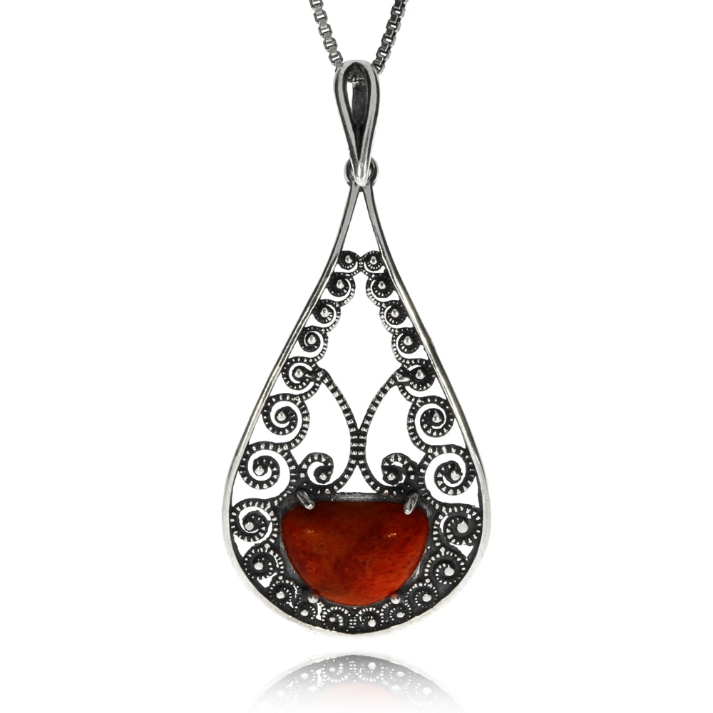 Stříbrný přívěsek s korálem - Zdobená kapka