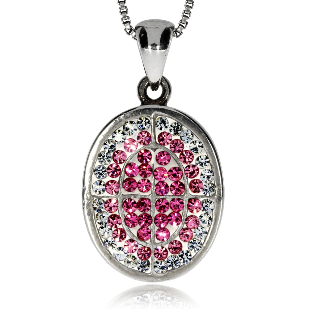 Stříbrný přívěsek s křišťály růžové a čiré kameny v oválu