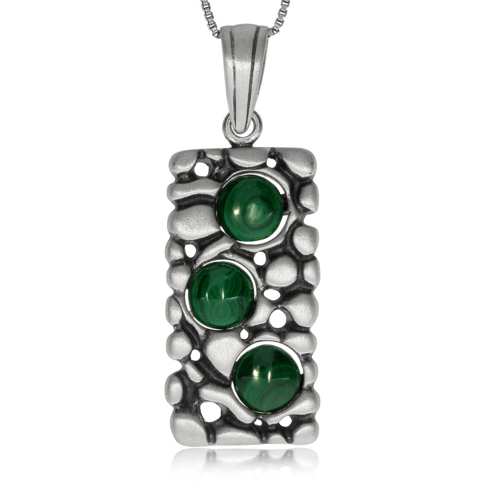 Stříbrný přívěsek - Obdélník se třemi kulatými malachity