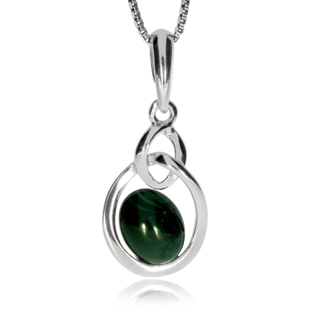 Stříbrný přívěsek - Oválný malachit s kroužky