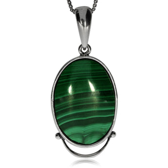 Střibrný přívěsek s malachitem - Ovál se zdobnou linií