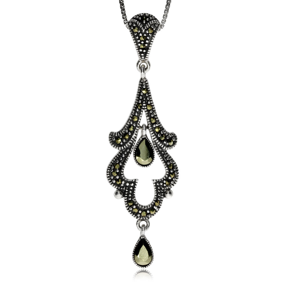 Stříbrný přívěsek s motivem lilie ozdobený markazity