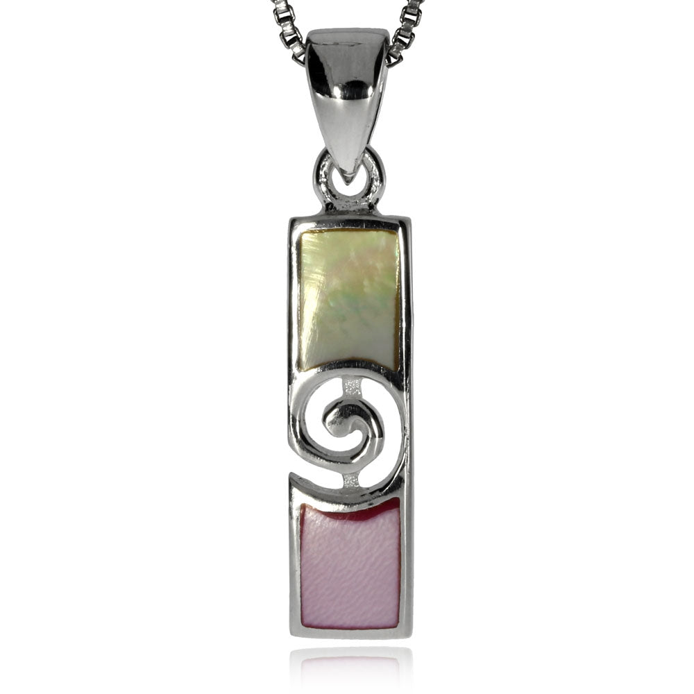 Jednoduchý a velice zajímavý dámský přívěsek, který v sobě spojuje hravý design a nekomplikovanou eleganci. Přívěsek zdobí kousek žluté a růžové perleti a na středu ho zdobí spirála. Vyrobený je ze zářivého leštěného stříbra.