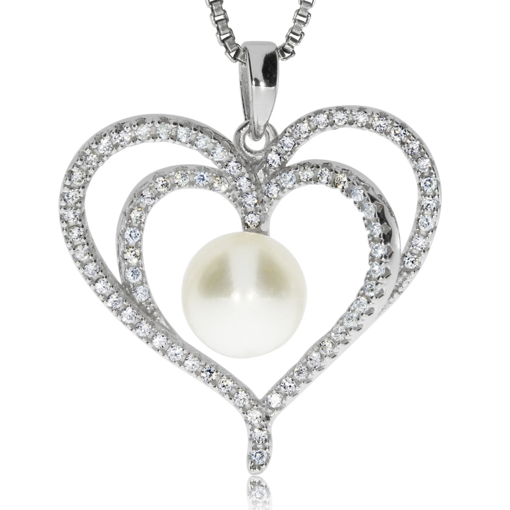 Stříbrný přívěsek s perlou a zirkony (kubická zirkonie) srdce