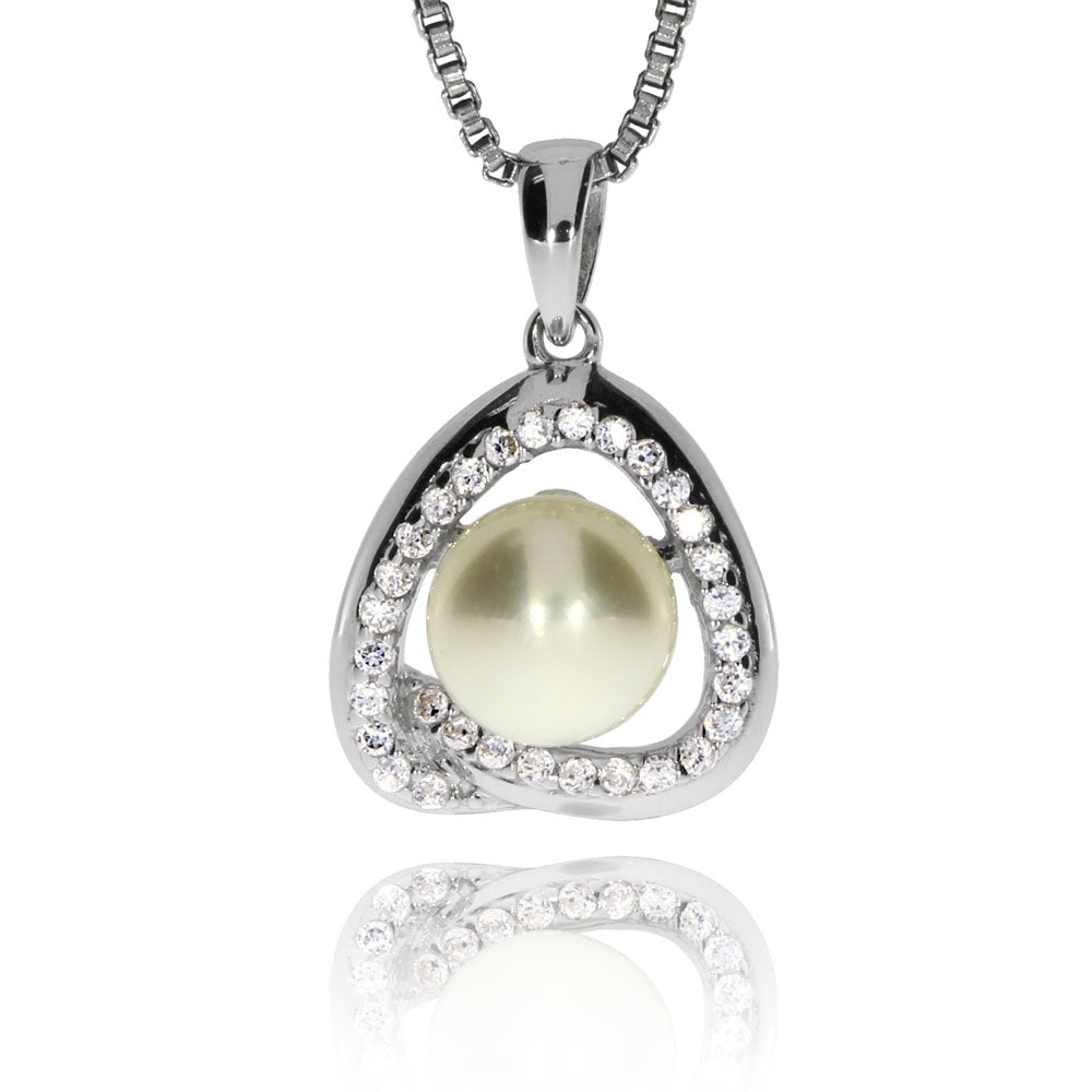 Stříbrný přívěsek s říční perlou a (kubická zirkonie) - Tři stěny