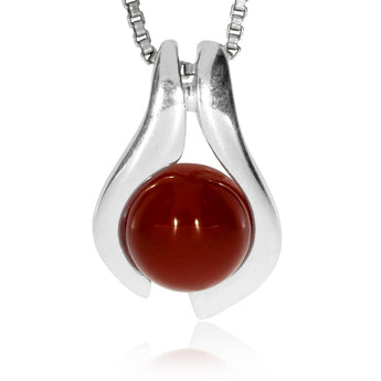 Stříbrný přívěsek s karneolem - Kulatý závěs