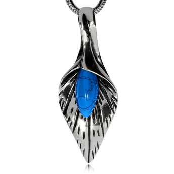 Stříbrný přívěsek se starostříbrnou povrchovou úpravou má tvar romatnického květu. Ve středu květu je zasazen výrazně barevný rekonstruovaný tyrkys. Tento rozšířený šperkařský materiál se využívá místo drahého přírodního minerálu. Je vyroben uměle z méně kvalitních kamínků tyrkysu rozdrcených na prášek a je spojen s pryskyřicí. Formuje se pod tlakem do různých tvarů.Tento přívěsek může být působivým doplňkem bílé halenky nebo svetru.