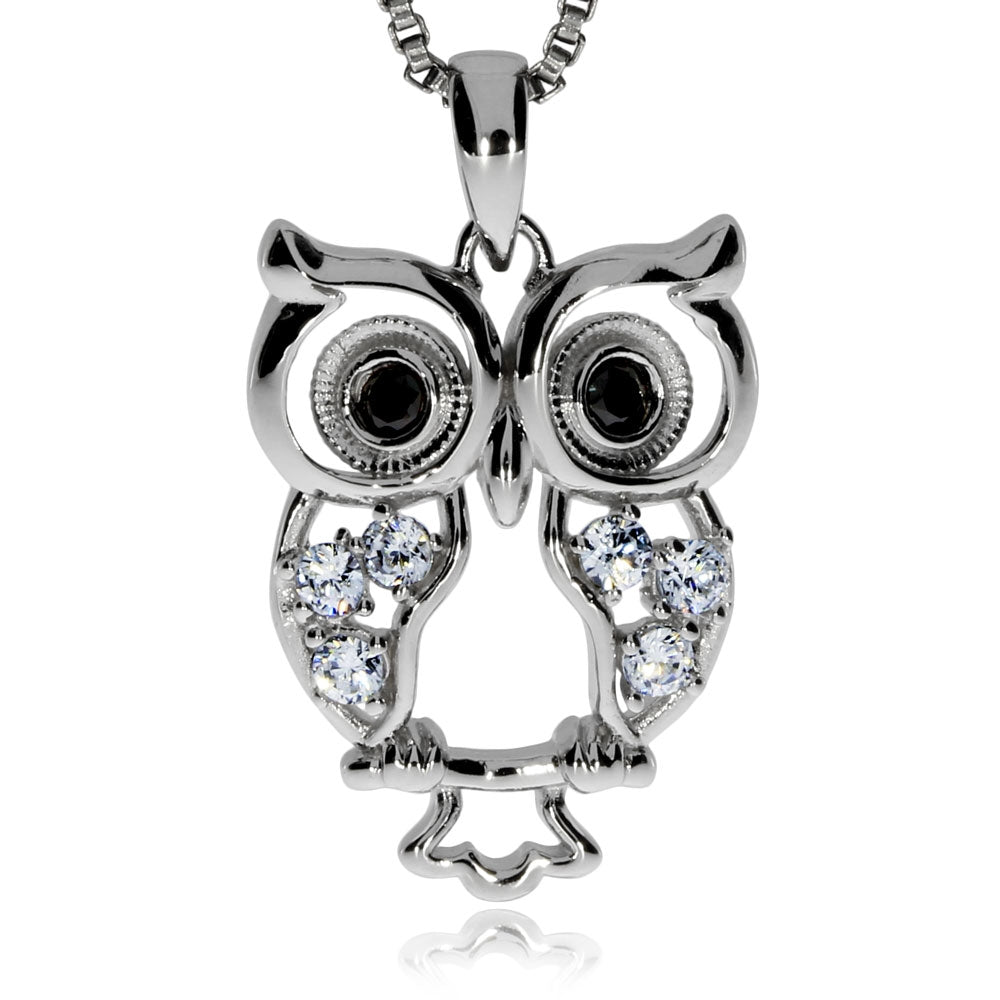 Dáváte přednost moderním šperkům s trendy motivy? Tento úžasně zpracovaný a do detailů dotažený přívěsek s motivem sovičky je absolutním hitem. Je vyrobený ze stříbra s rhodiovaným povrchem, plocha kovu je tím lépe odolná a krásně hladká a lesklá. Po obou stranách má sova zasezené tři syntetické zirkony (cubic zirconia), oči potom tvoří dva kameny černé barvy.