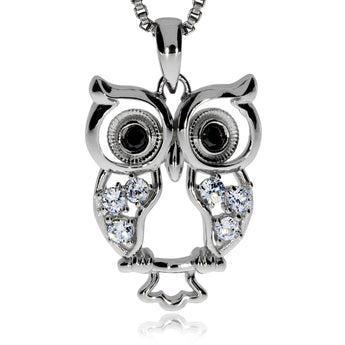 Stříbrný přívěsek se zirkony (kubická zirkonie) sovička