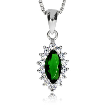Stříbrný přívěsek se zirkony (kubická zirkonie) - Zelená markýza