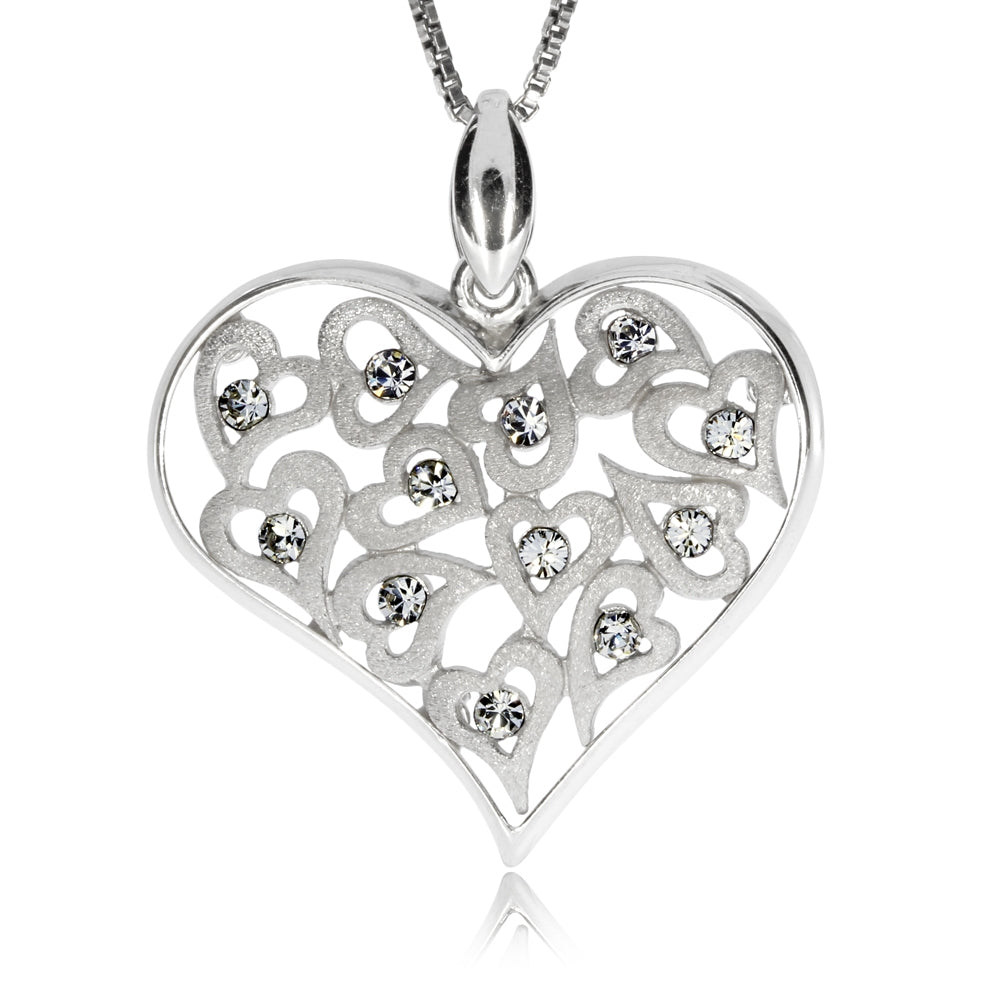 Stříbrný přívěsek - Srdíčko s křišťály Swarovski a malými srdíčky uvnitř