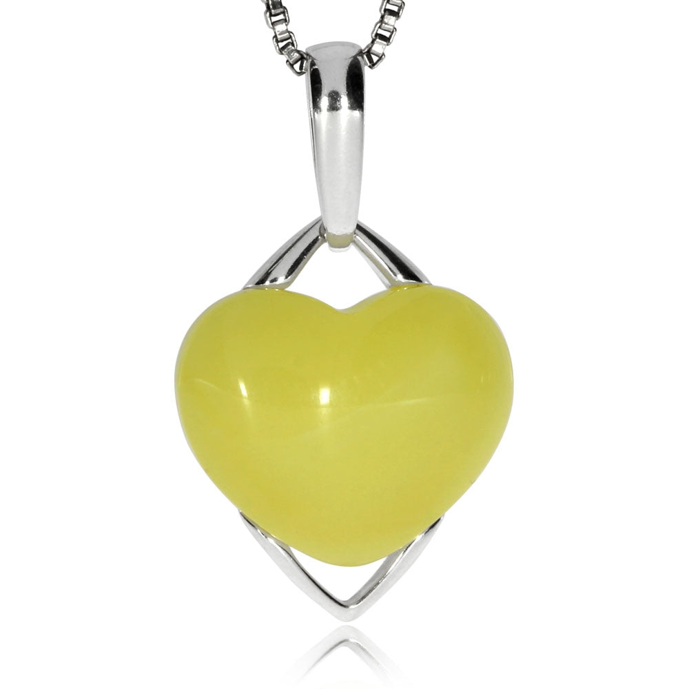 Stříbrný přívěsek s mléčným jantarem - Srdíčko