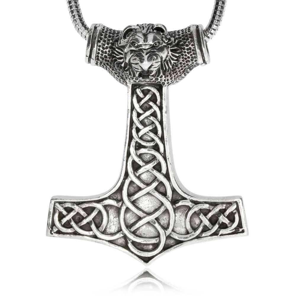 Stříbrný přívěsek - Thorovo kladivo s hlavou tygra