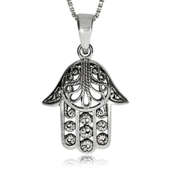Stříbrný přívěsek - Ochranná ruka s květinovými motivy