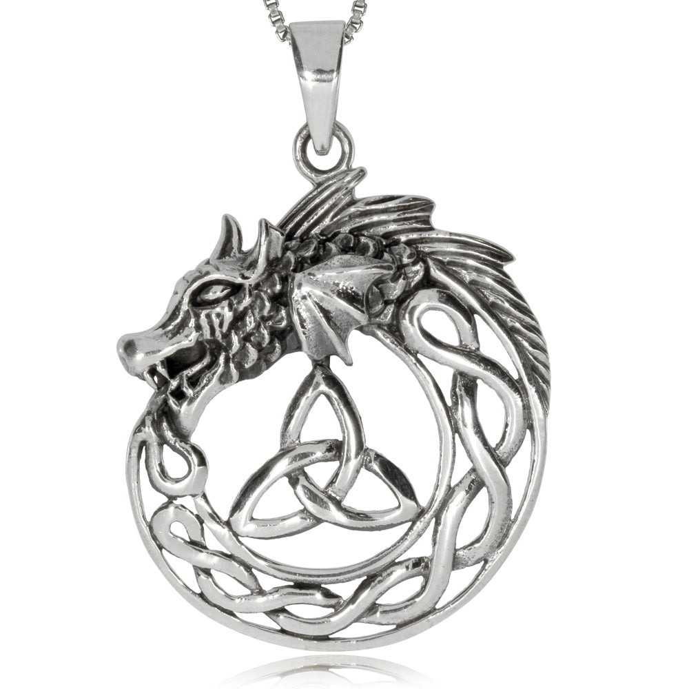 Stříbrný přívěsek - Drak v kruhu s triquetrou