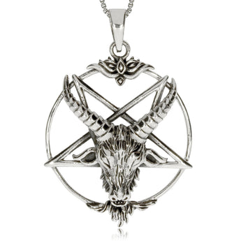 Kulatý přívěsek ze stříbra v sobě nese značně negativní symboliku - obrácený pentagram, tedy pentagram stojící na jednom cípu býval považován za smybol ďábla. Ve spojení s hlavou pekelného kozla je symbol ještě umocněn jako satanistický. Takže s tímto šperkem opatrně, jste-li tošku pověrčivý/á. Pentagram s hlavou kozla bývá také nazýván jako Bafometova pečeť.