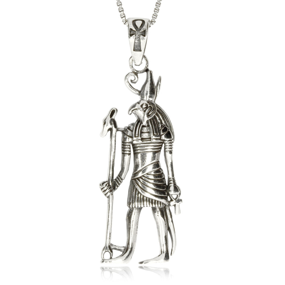 Stříbrný přívěsek s patinovaným povrchem zobrazuje nejvýznamnějšího staroegyptského boha - Hora (nebo také Horuse). Jedním z vyobrazení tohoto boha byla postava muže se sokolí hlavou, jindy byl zobrazen jako sokol. Dobře známý je symbol Horova oka, který je považován za významný ochranitelský amulet.