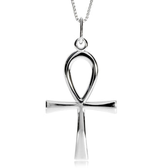 Větší přívěsek ze stříbra 925/1000, které je povrchově rhodiované, okouzlí vysokým leskem a úchvatným tvarem prastarého egyptského hieroglyfu - Ankh, který je také nazýván jako nilský nebo egyptský kiříž. Tento přívěsek na výšku přesahuje 5 cm a zasluhuje si delší silnější řetízek. Kulaté očko umožní, aby jím prošel i silnější návlek.